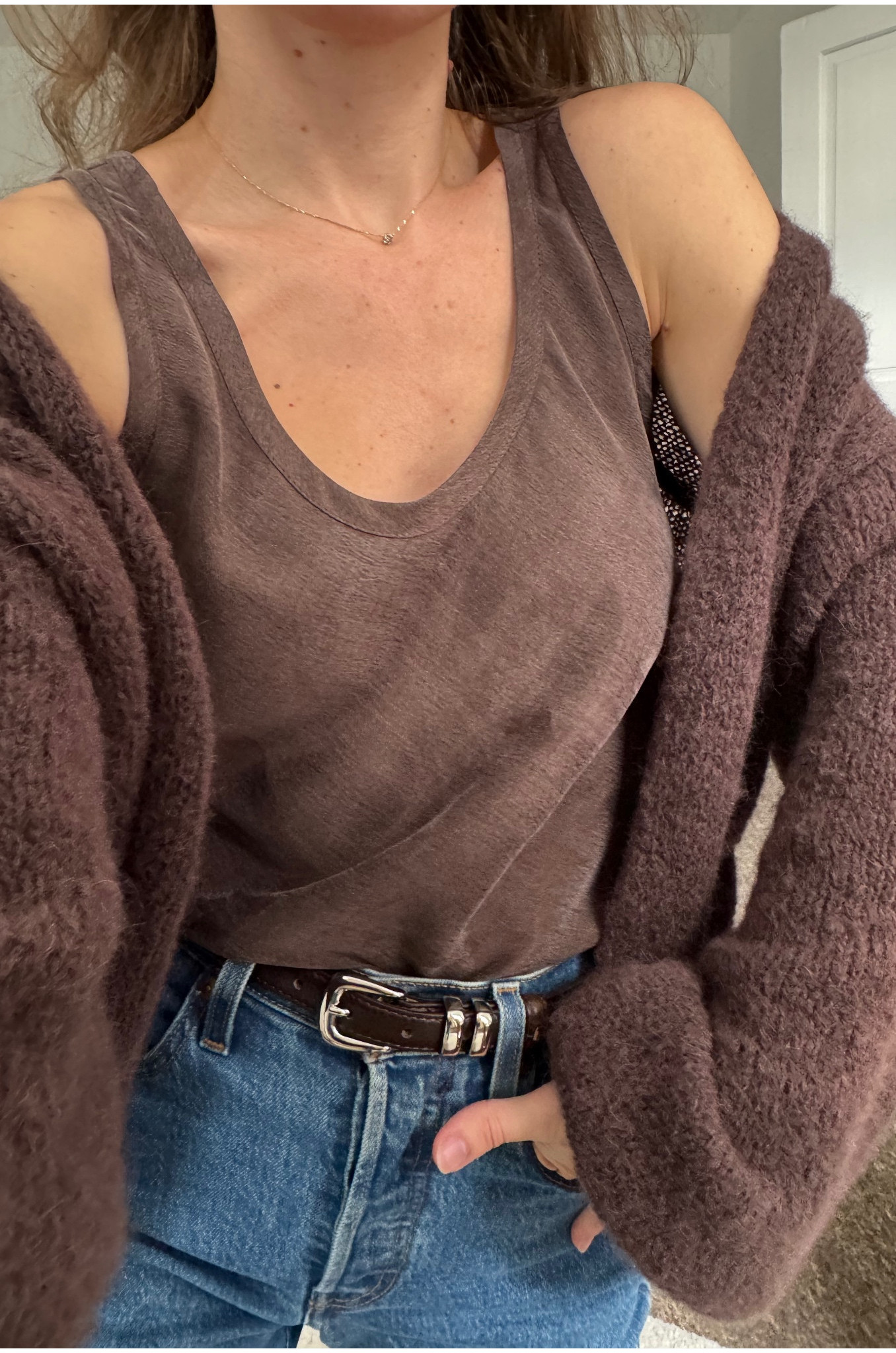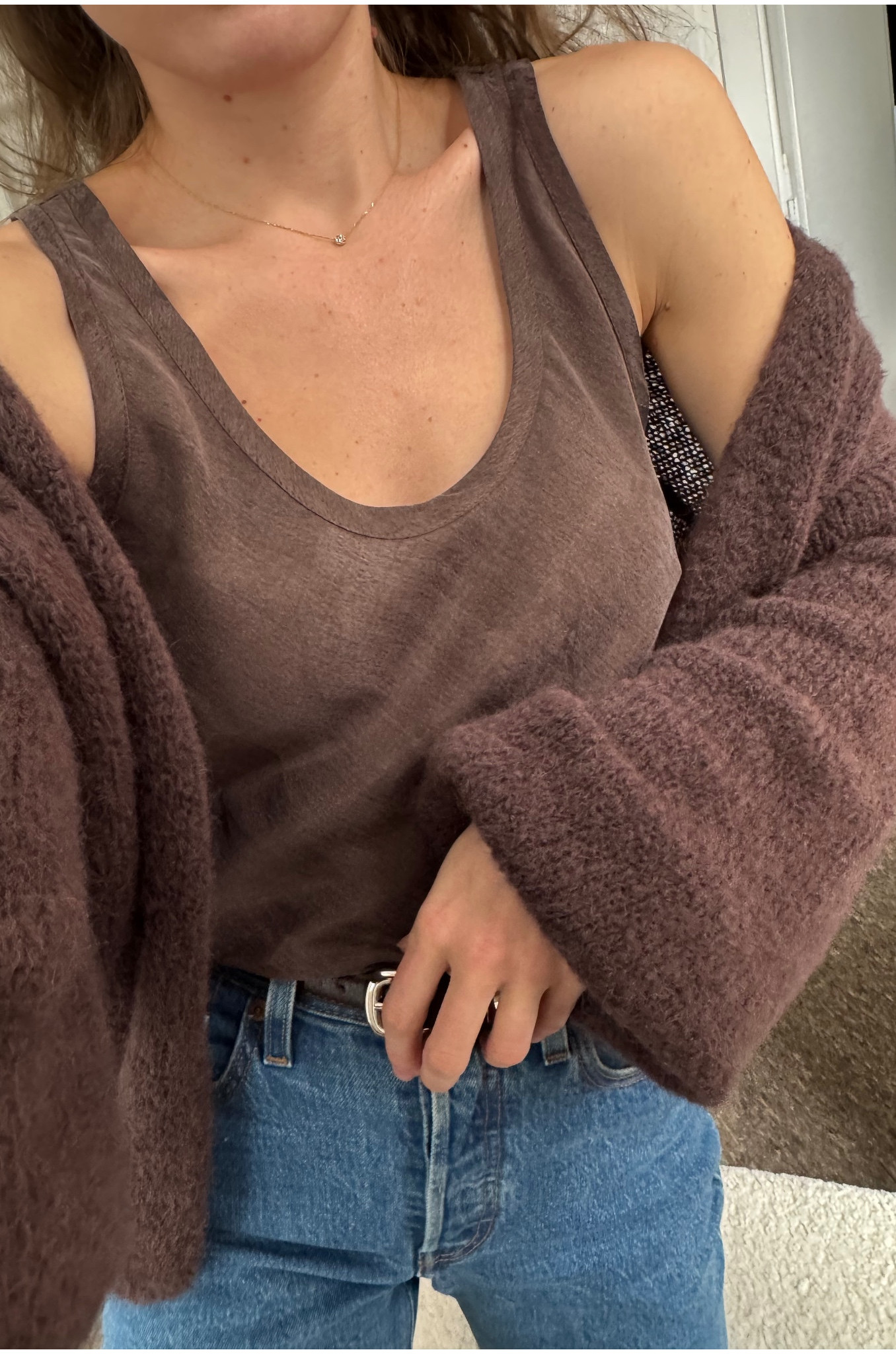 Top Vera to propozycja dla kobiet, które cenią prostotę w eleganckim wydaniu. Wykonany z wysokiej jakości mieszanki lyocellu i wiskozy, wyróżnia się szerszymi ramiączkami oraz charakterystycznym obszyciem grubszą lamówką. Fason cięty po skosie pięknie układa się na sylwetce, podkreślając jej naturalne linie i dodając lekkości. Topka w stylu minimalistycznym idealnie komponuje się zarówno z klasycznymi spodniami, jak i spódnicą - świetnie sprawdzi się jako baza pod marynarkę. Model Vera to ponadczasowy element garderoby, który pozwoli stworzyć wiele stylowych zestawów w duchu Marisol