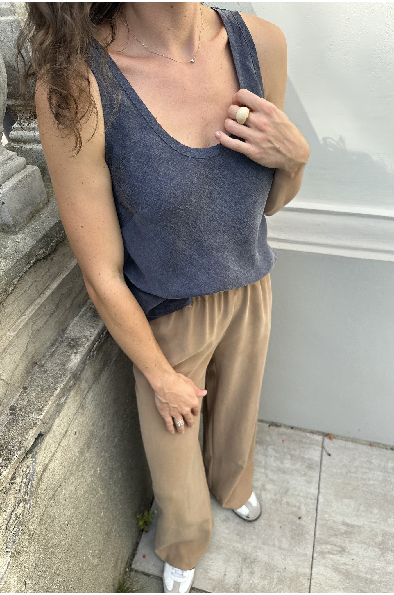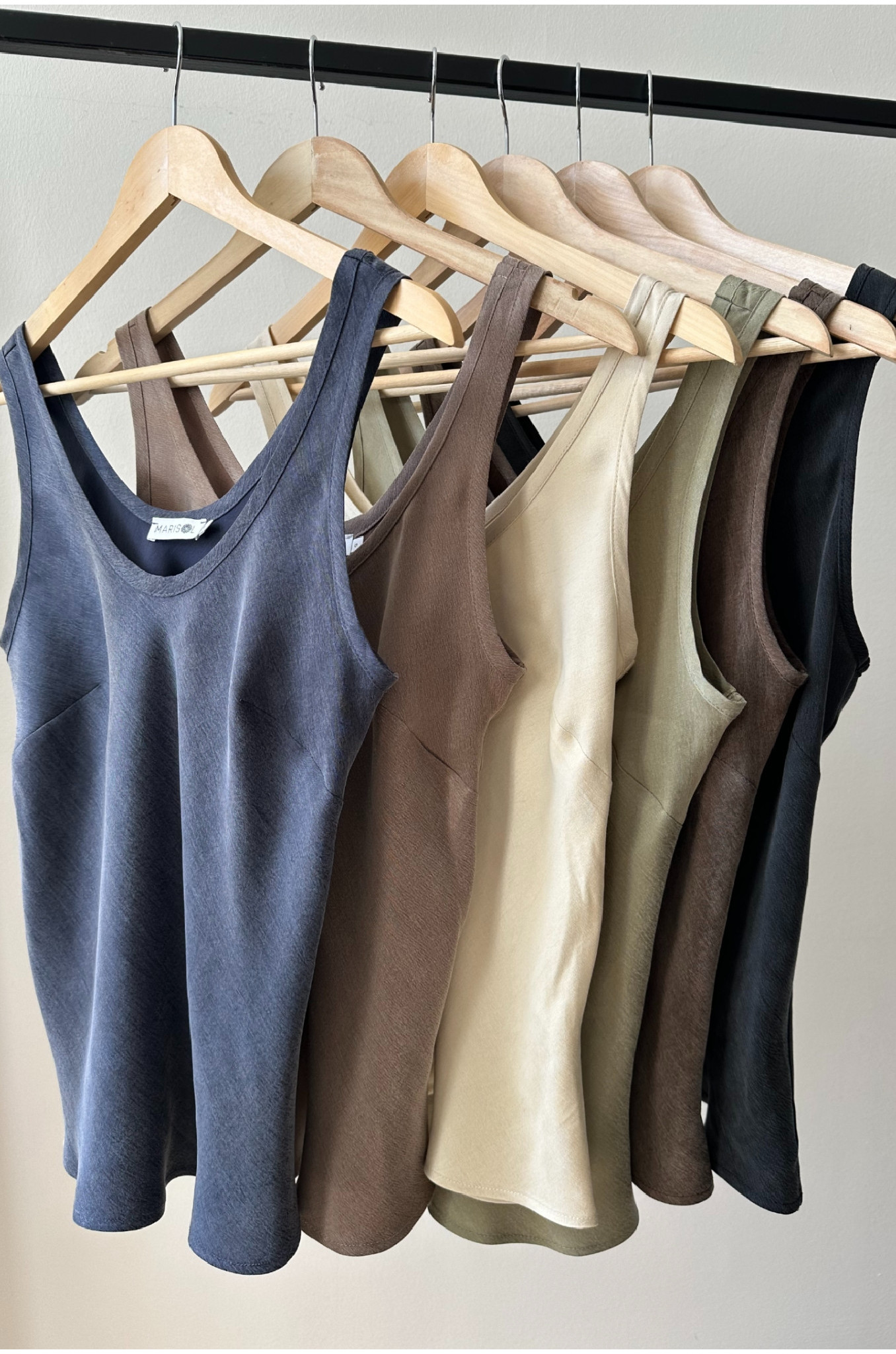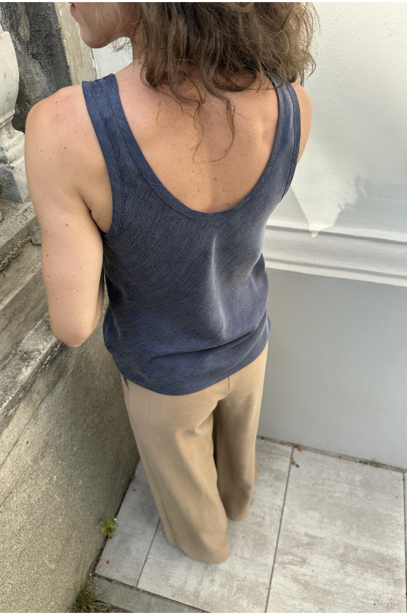 Top Vera to propozycja dla kobiet, które cenią prostotę w eleganckim wydaniu. Wykonany z wysokiej jakości mieszanki lyocellu i wiskozy, wyróżnia się szerszymi ramiączkami oraz charakterystycznym obszyciem grubszą lamówką. Fason cięty po skosie pięknie układa się na sylwetce, podkreślając jej naturalne linie i dodając lekkości. Topka w stylu minimalistycznym idealnie komponuje się zarówno z klasycznymi spodniami, jak i spódnicą - świetnie sprawdzi się jako baza pod marynarkę. Model Vera to ponadczasowy element garderoby, który pozwoli stworzyć wiele stylowych zestawów w duchu Marisol