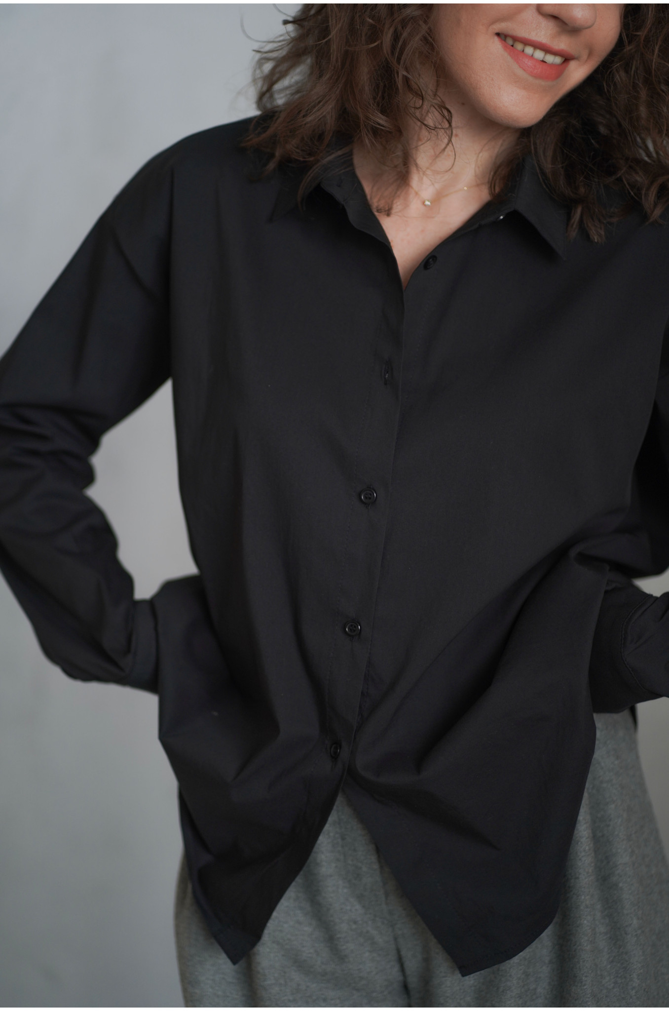Czarna klasyczna koszula damska to ponadczasowy element garderoby, który sprawdzi się w każdej stylizacji – zarówno eleganckiej, jak i codziennej. Wykonana z wysokiej jakości bawełnianej tkaniny, zapewnia komfort noszenia i doskonałe dopasowanie przez cały dzień.