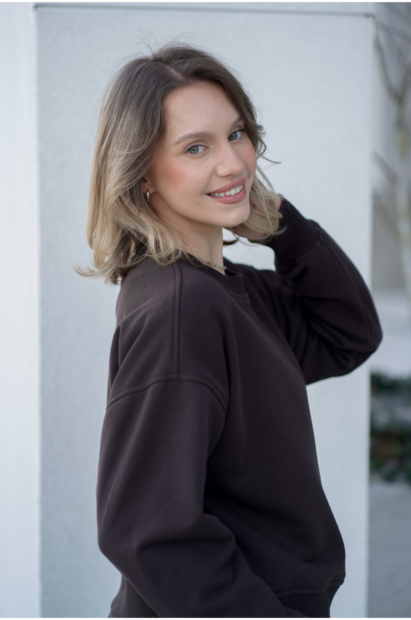 Wykonana z wysokogatunkowej bawełny polskiej produkcji, zachwyca miękkością, trwałością i przyjemnym w dotyku wykończeniem. Doskonale komponuje się zarówno ze spodniami dresowymi, jak i jeansami czy spódnicą - tworząc nieograniczone możliwości stylizacji.