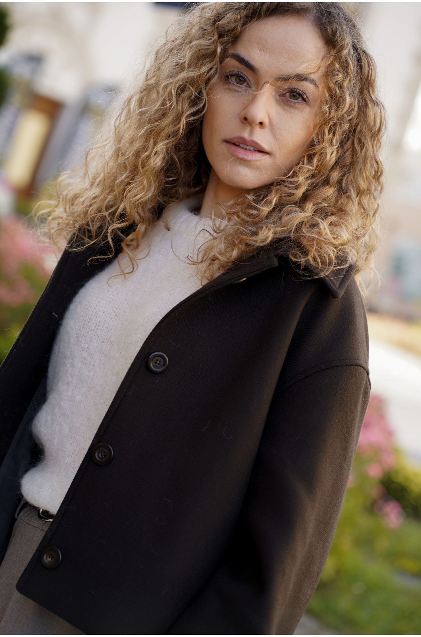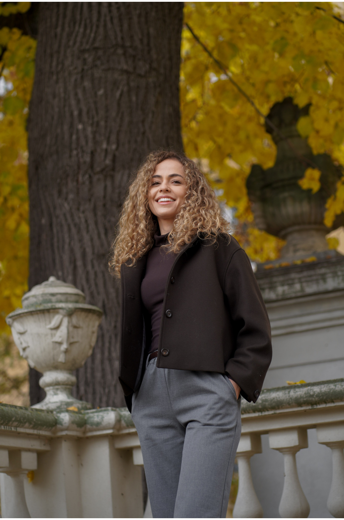 Ta kurtka to kwintesencja minimalistycznej elegancji w najlepszym wydaniu. Zaprojektowana w pudełkowym fasonie z lekkim oversize i delikatnie opuszczanymi ramionami, subtelnie łączy komfort z nowoczesnym stylem.