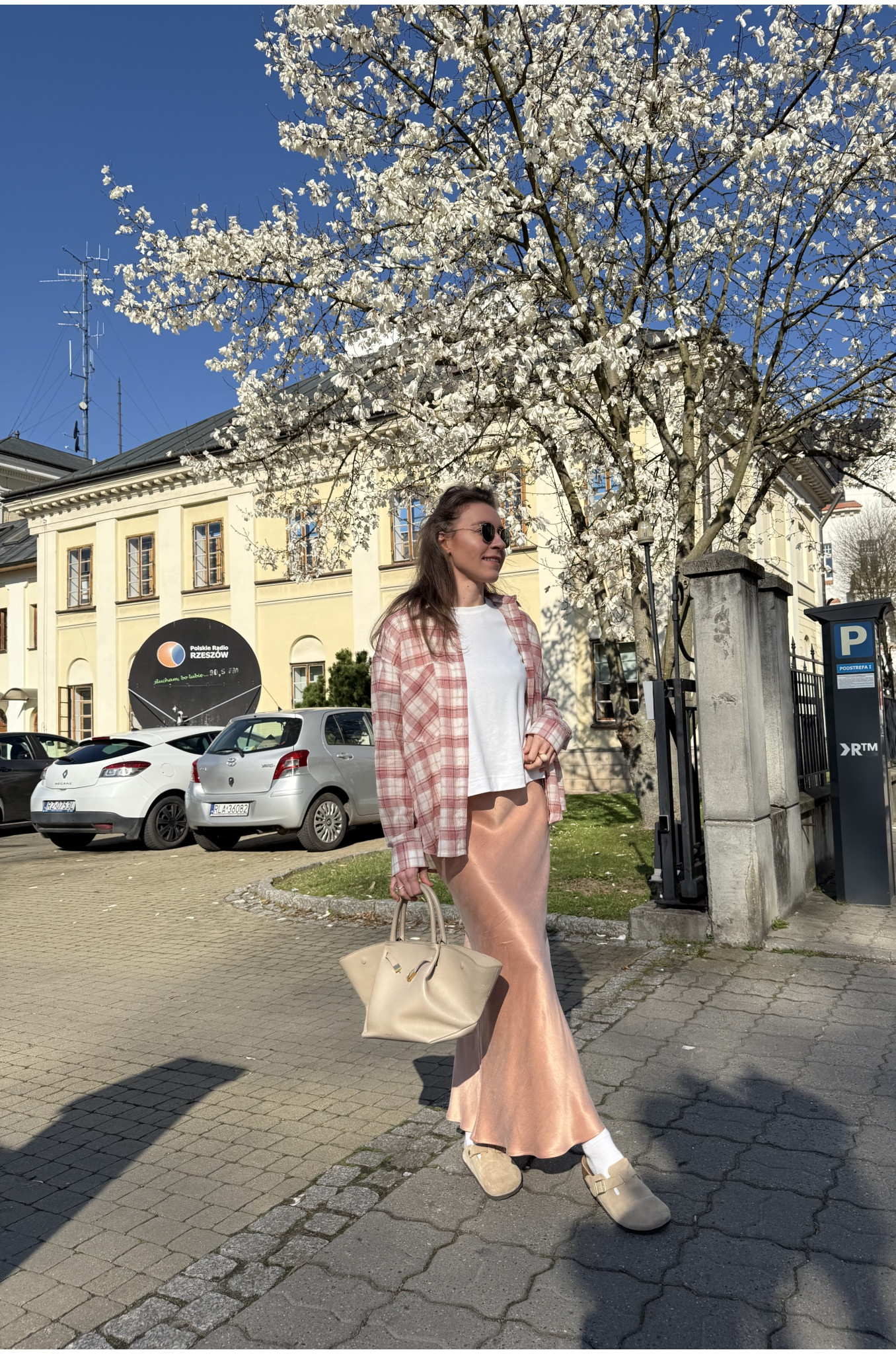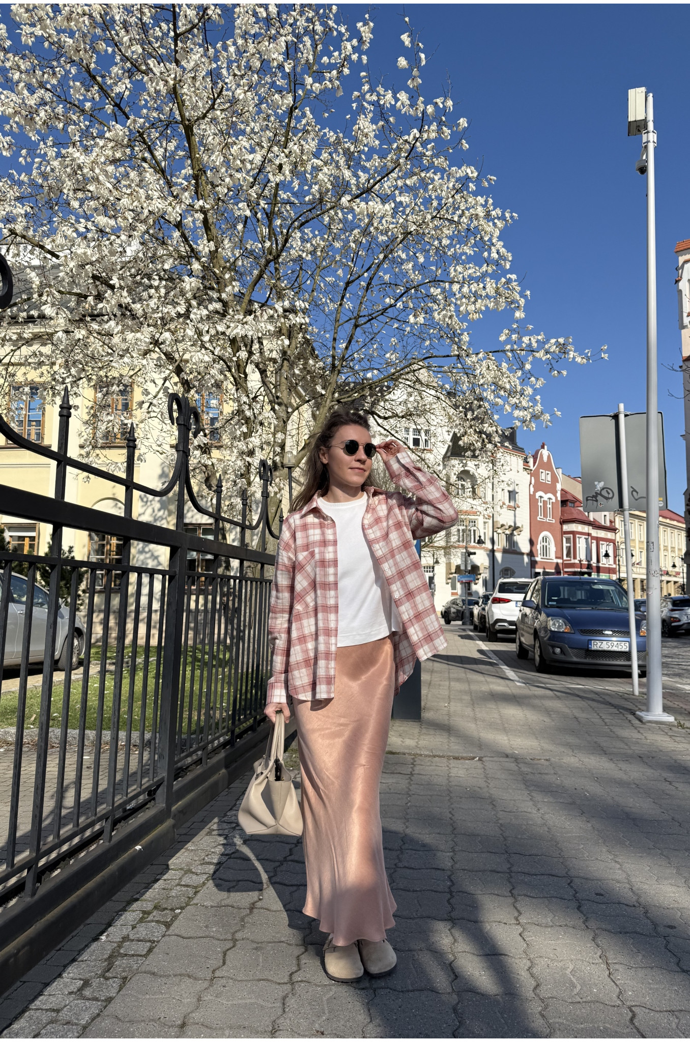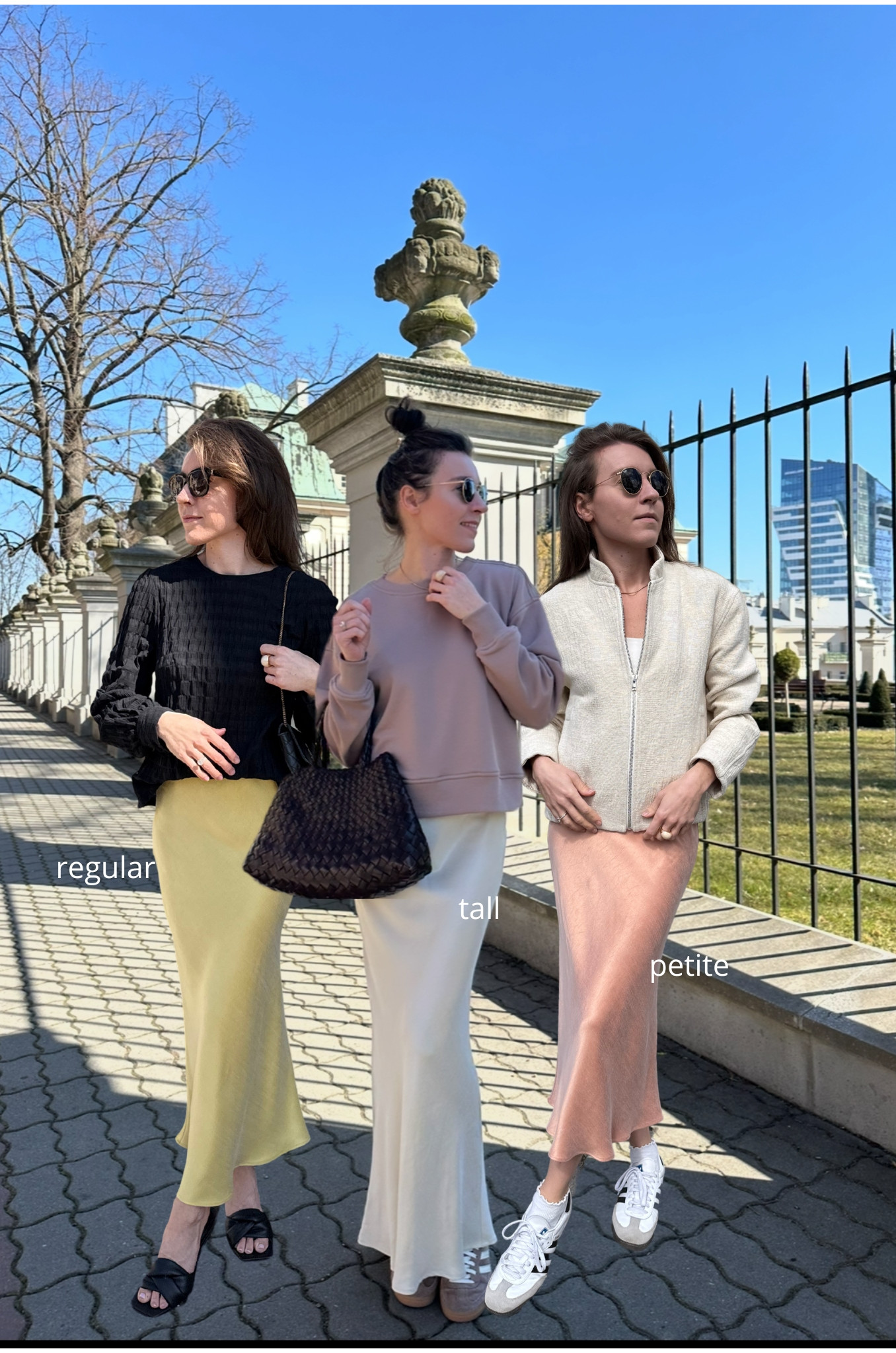 Modelka ma na sobie rozmiar XS Regular, a jej wzrost to 164 cm. Sprawdź tabelę wymiarów, szyjemy spódnice w 3 długościach: PETITE, REGULAR, TALL