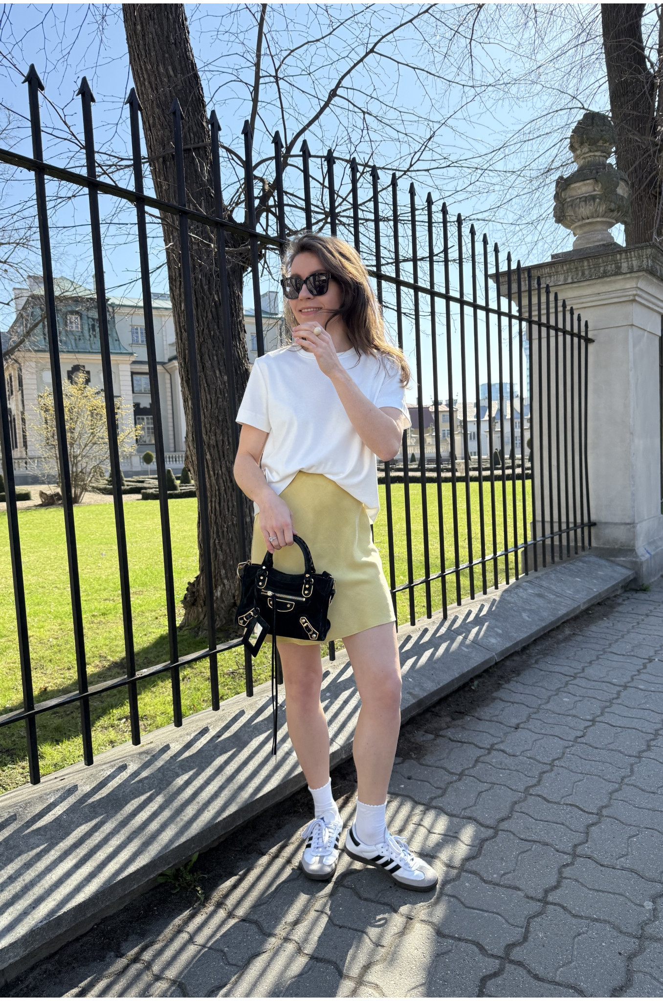Krótka spódnica szyta ze skosu. Możesz połączyć ją z naszym jelonkowym t-shirtem, koszulą, sweterkiem - tak naprawdę ze wszystkim. Będziesz w niej chodzić cały rok i założysz do niej każde buty - szpilki, klapki, trampki czy sztyblety. Pokochasz ją za jej wyjątkową tkaninę i cudowny krój, który idealnie dopasuje się do Twojej figury. Spódnica naciąga się do Twoich wymiarów i pięknie opływa sylwetkę !