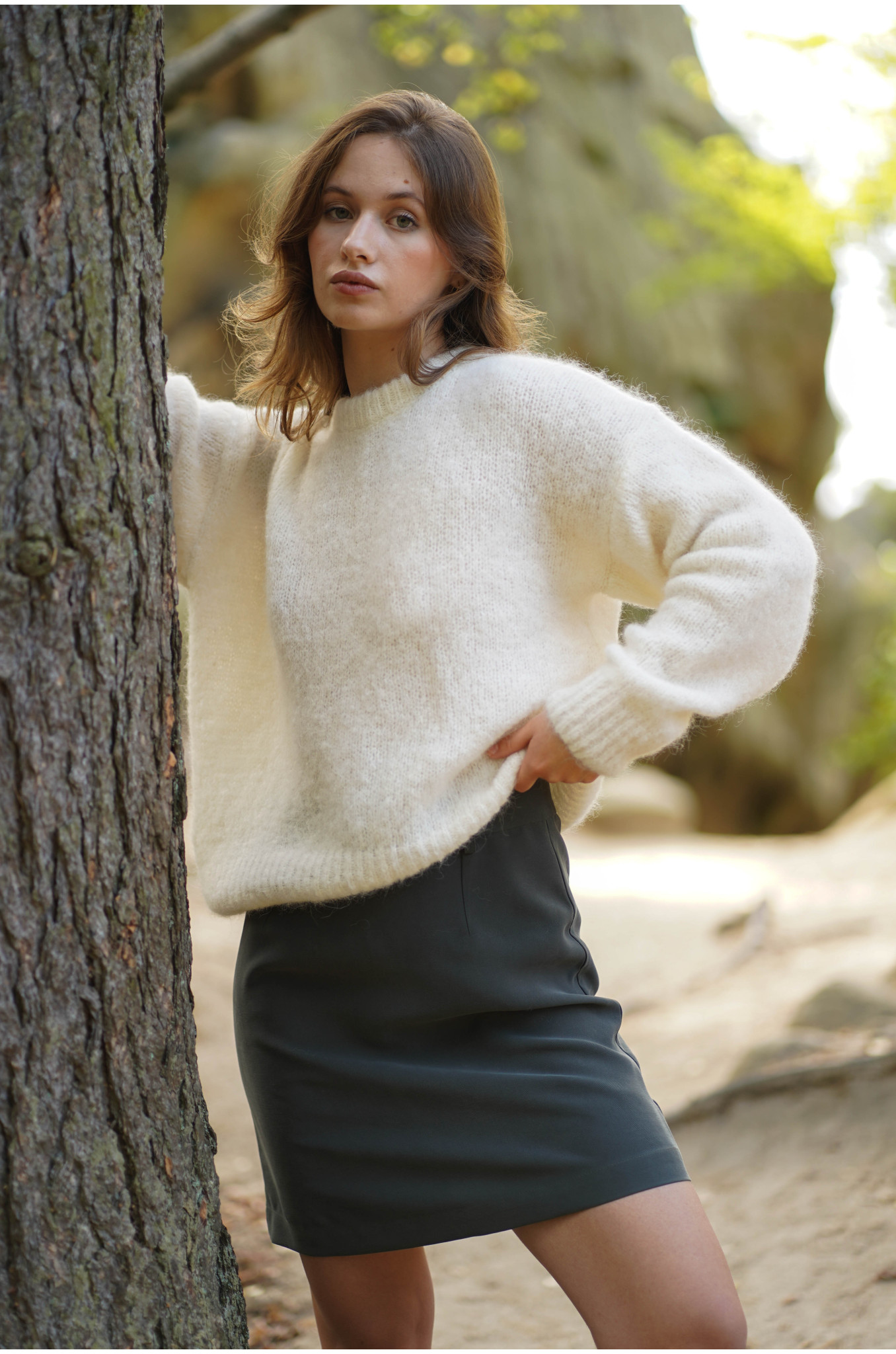 Dzięki długości przed kolano spódniczka prezentuje się kobieco i uniwersalnie – świetnie sprawdzi się zarówno na co dzień, jak i w bardziej eleganckich stylizacjach. Wygodne szlufki pozwalają nosić ją z ulubionym paskiem, co daje możliwość personalizacji i podkreślenia talii.