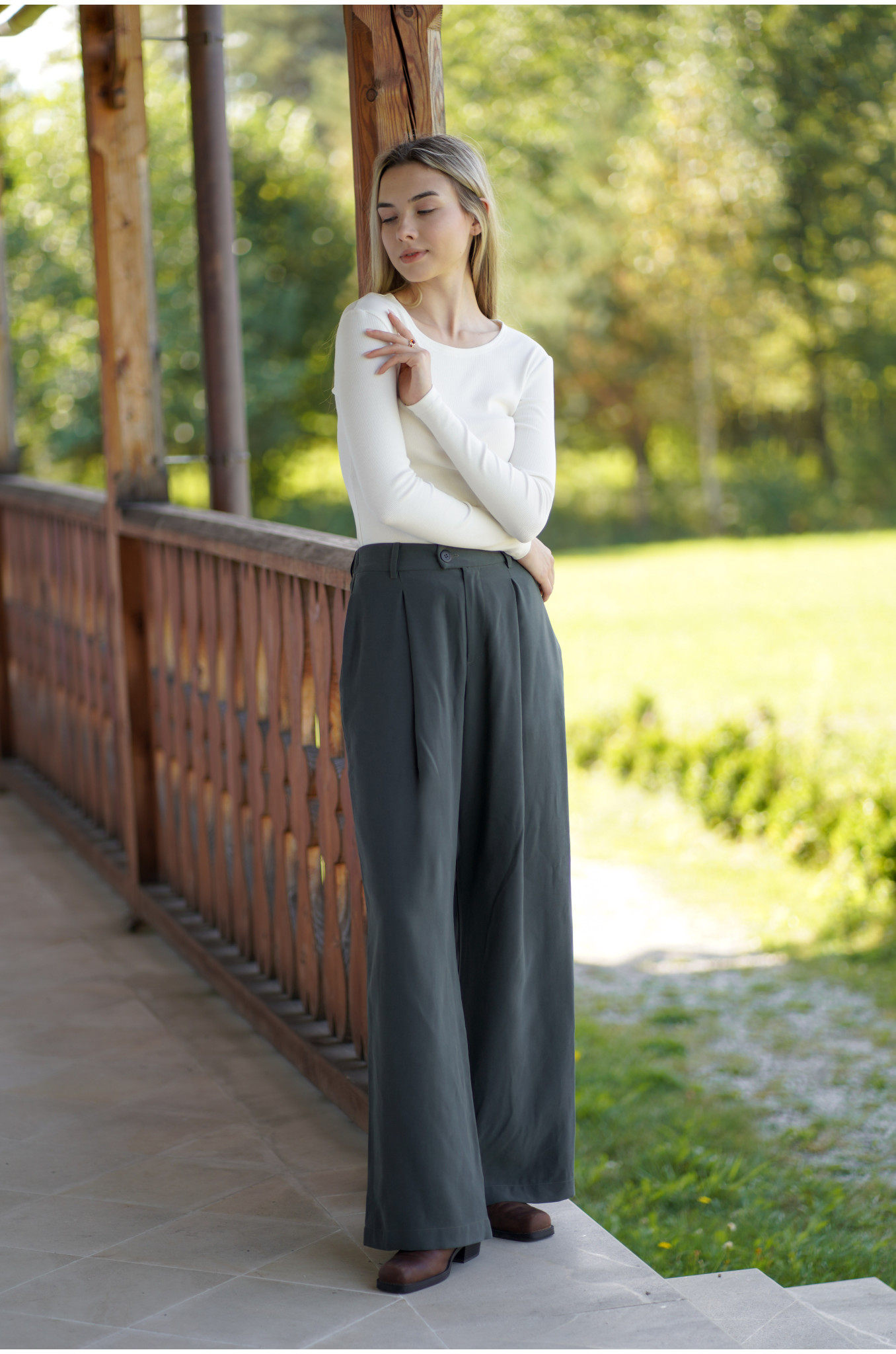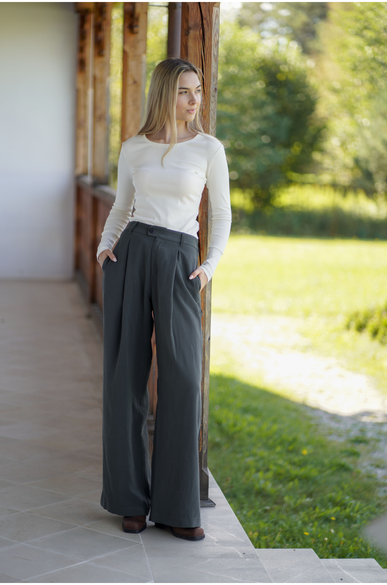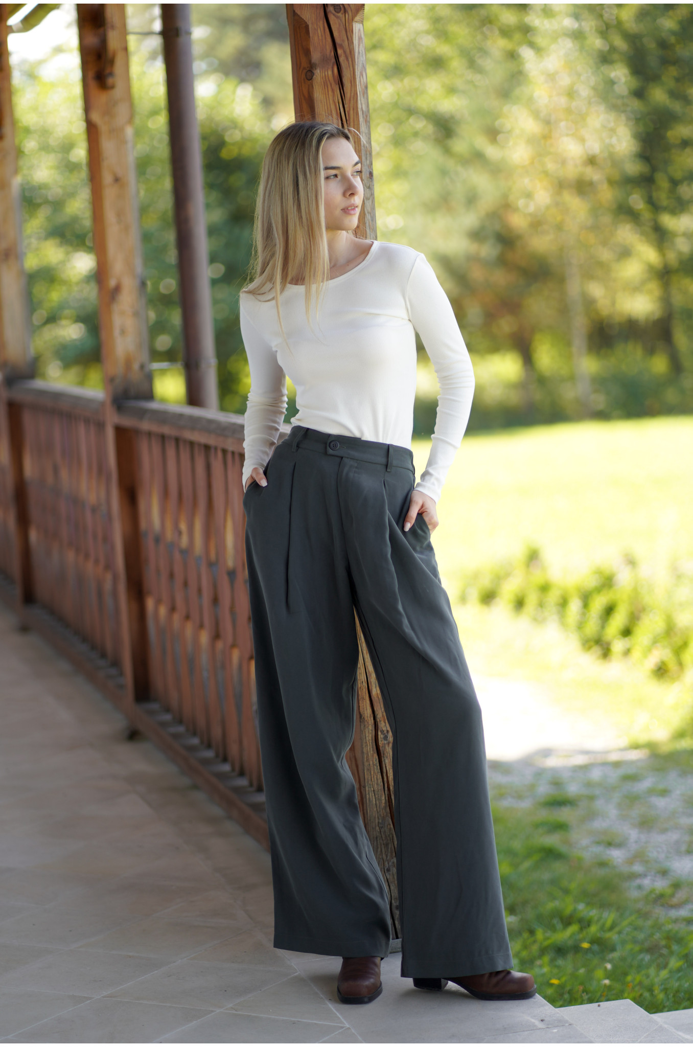 Spodnie Boston – klasyczne spodnie z zakładką i szerszą nogawką | Marisol