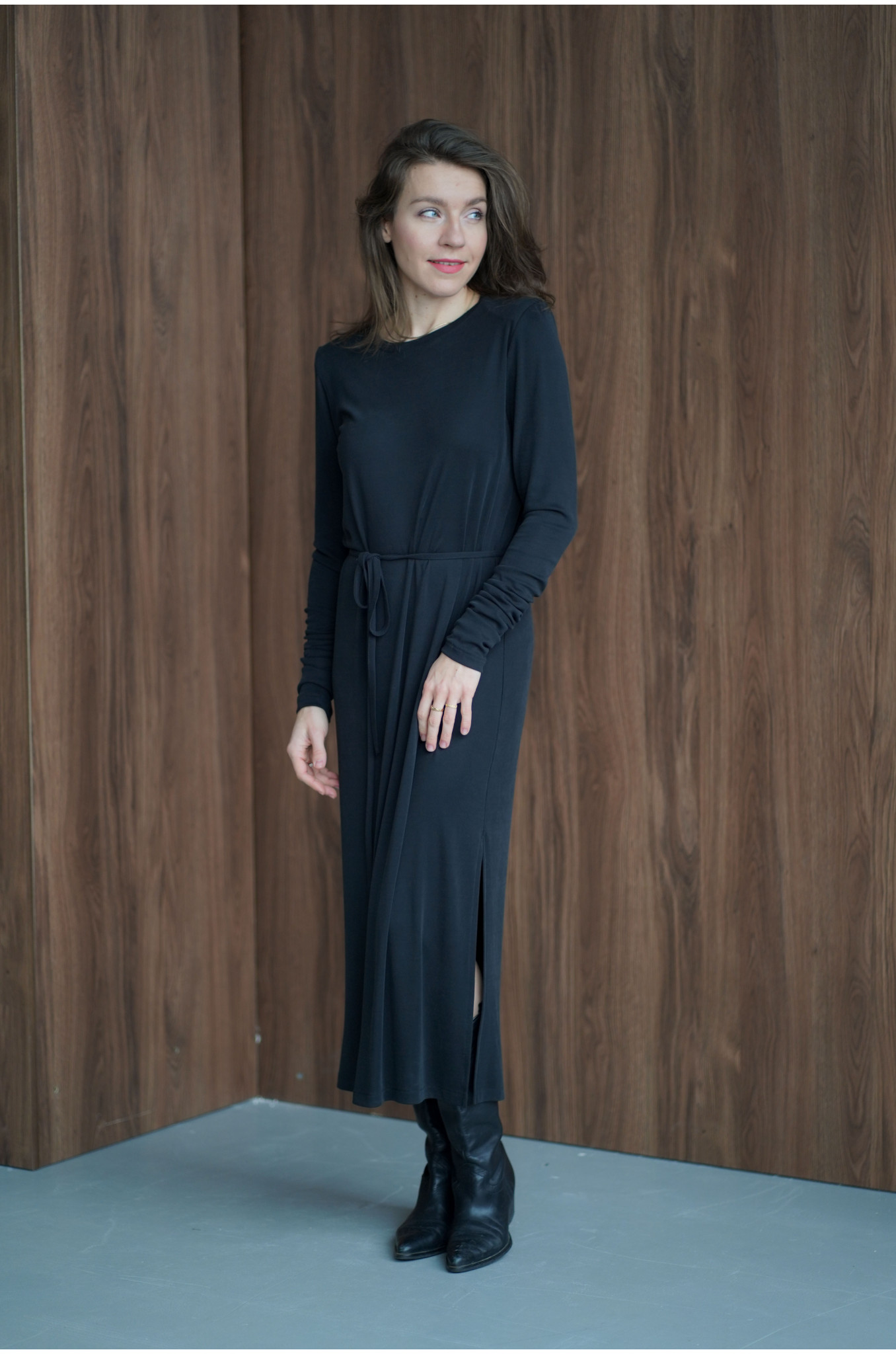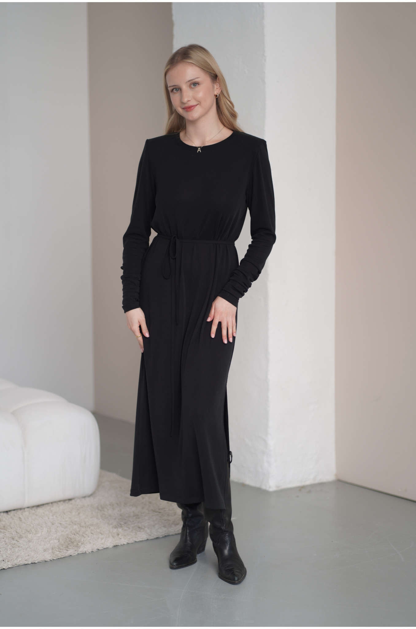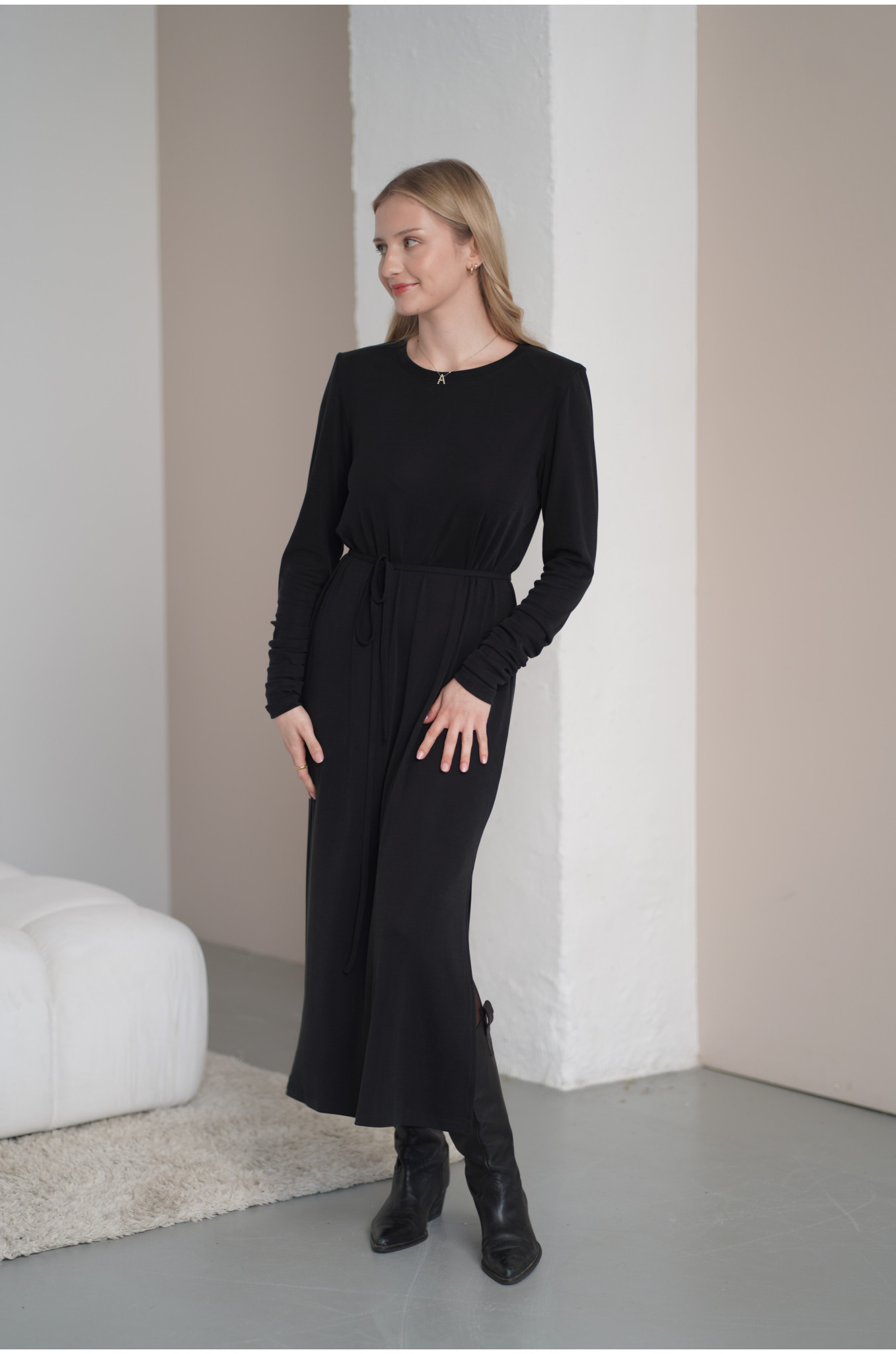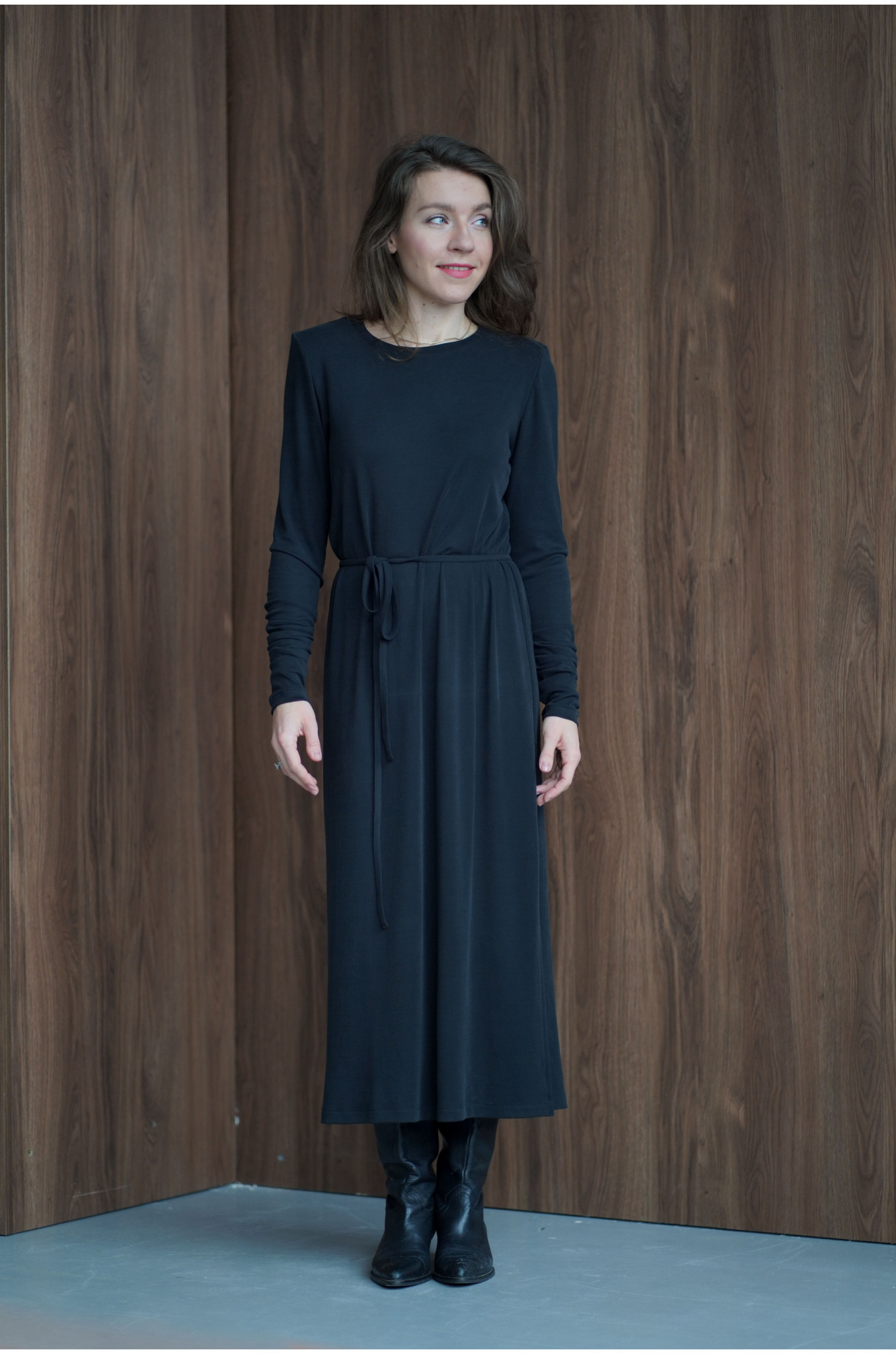 Sukienka z paskiem to propozycja dla kobiet ceniących wygodę, swobodę i nowoczesną elegancję. Wykonana z lejącej dzianiny przypominającej cupro, pięknie układa się na sylwetce, subtelnie podkreślając jej kształty i zapewniając wyjątkowy komfort noszenia. Materiał jest miękki, przyjemny dla skóry i delikatnie chłodzący, dzięki czemu sukienka sprawdzi się zarówno na co dzień, jak i na bardziej wyjątkowe okazje.