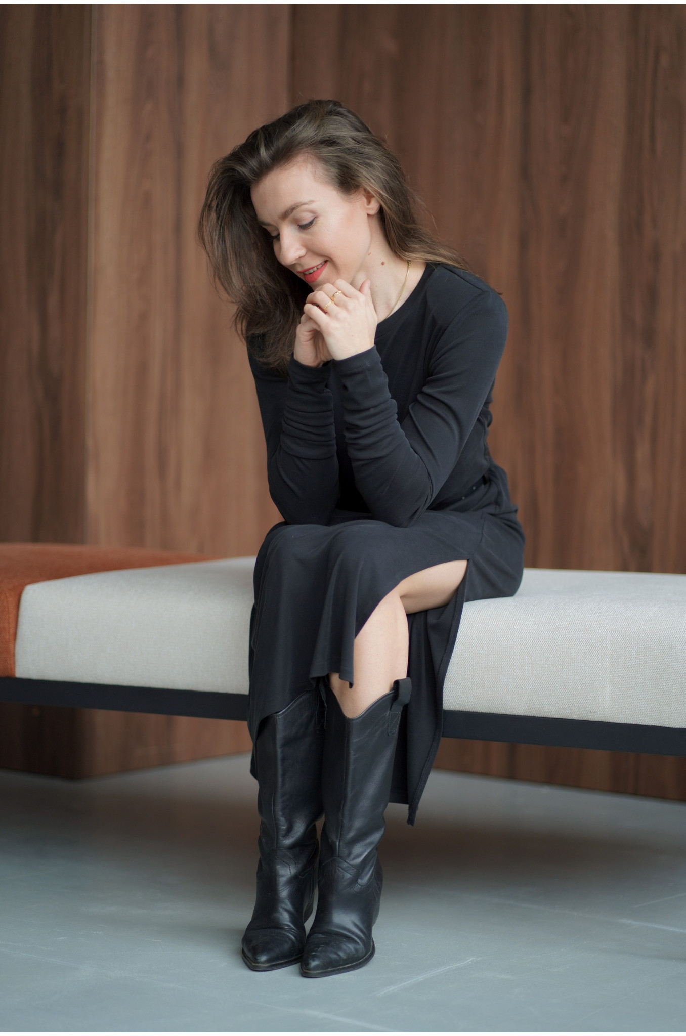 Sukienka ma krój delikatny oversize - jest celowo luźna i swobodna. Wybierając swój standardowy rozmiar, uzyskasz modny, nowoczesny efekt. Jeśli preferujesz bardziej dopasowany wygląd, noś ją z paskiem lub wybierz rozmiar mniejszy. To model niezwykle uniwersalny - świetnie wygląda zarówno z botkami i marynarką, jak i z sandałami czy sneakersami, dopasowując się do Twojego stylu i okazji.