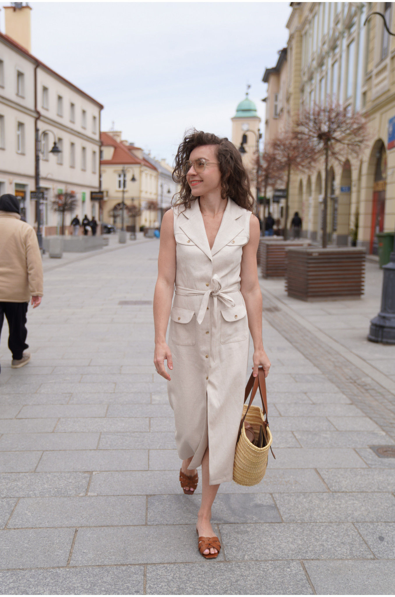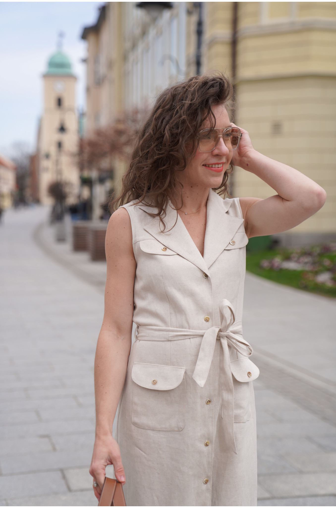 To uniwersalna sukienka, która świetnie sprawdzi się w stylizacjach biurowych, ale również w bardziej casualowym wydaniu - zestawiona z klapkami, loafersami, czy nawet snickersami.