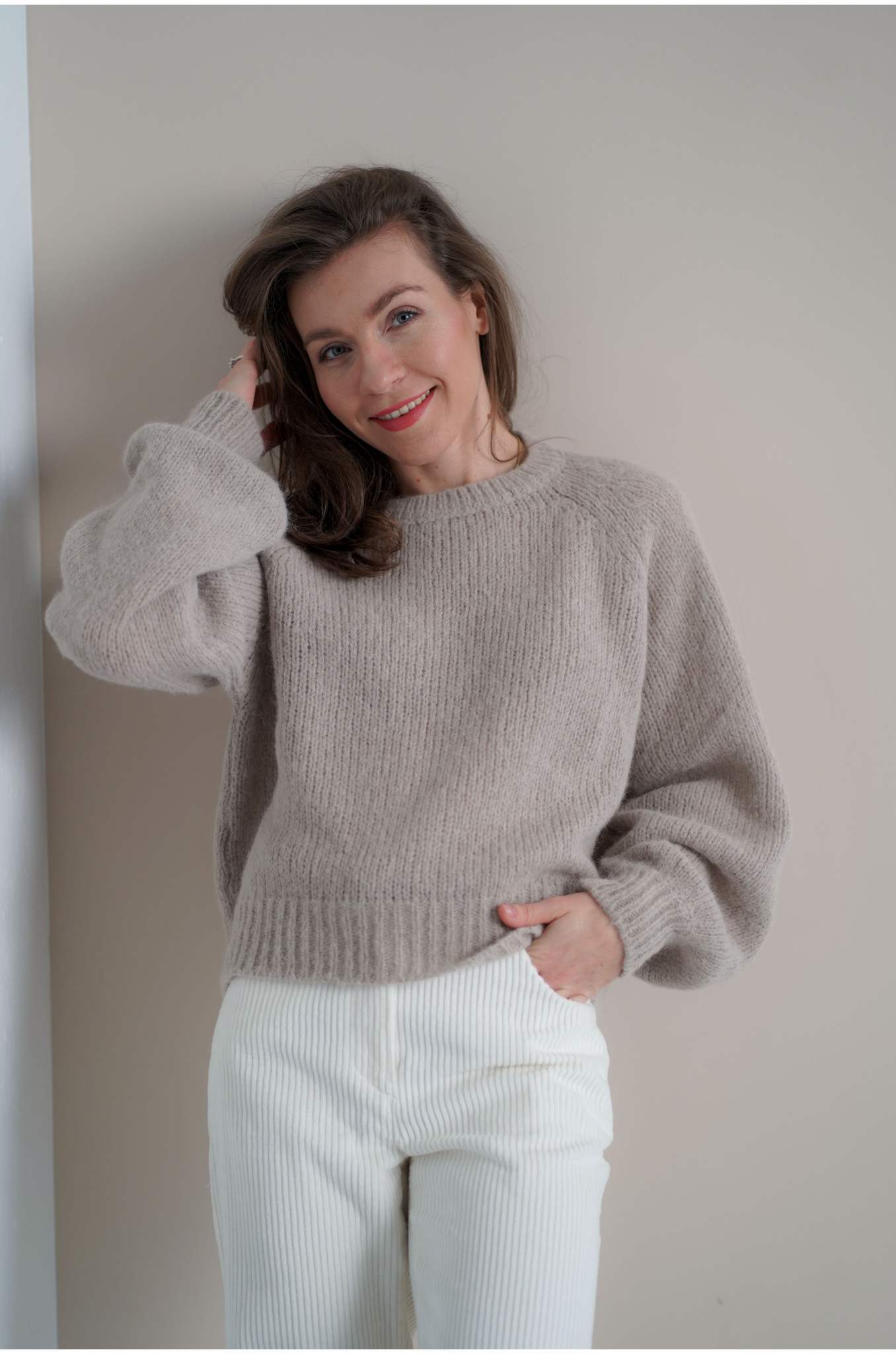 Sweter Noelle – luksusowy krótki sweter z raglanem z alpaki i wełny merino