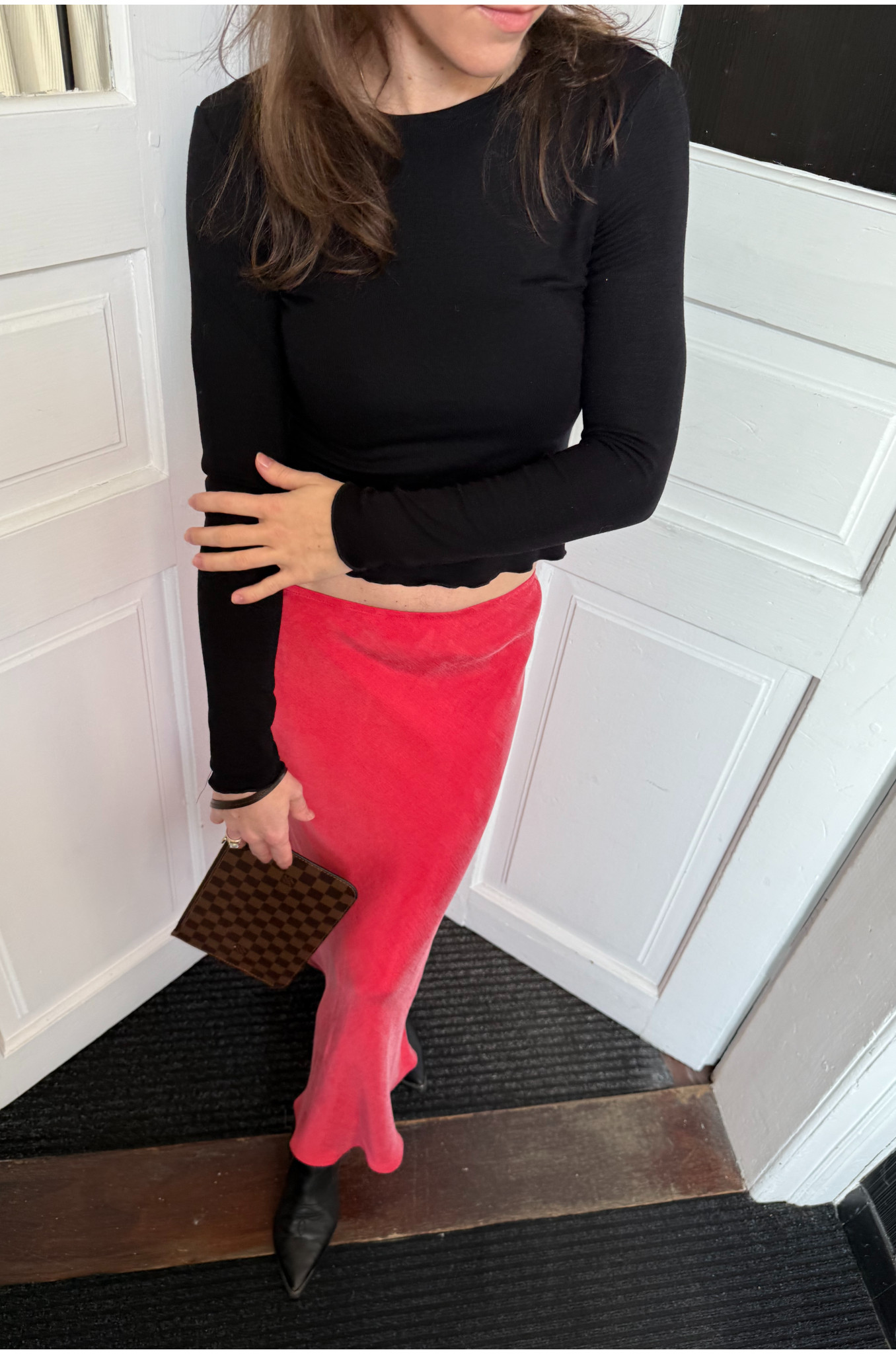 Longsleeve Swan Black to esencja minimalizmu i uniwersalnego stylu. Krój crop dodaje mu nowoczesnego charakteru, a ozdobna mereżka subtelnie wyróżnia go na tle klasycznych fasonów. Dzianina typu peach skin jest niezwykle miękka, przyjemna w dotyku i dopasowuje się do ciała, zapewniając maksymalny komfort noszenia.
