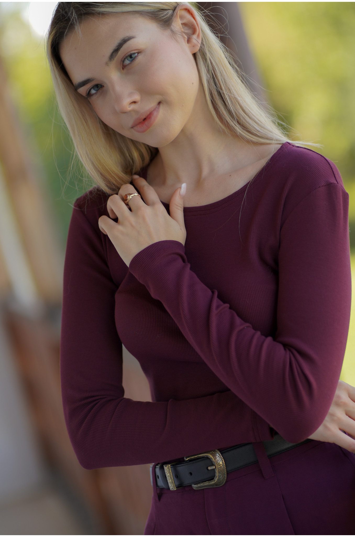 - kolor: zgaszone bordo