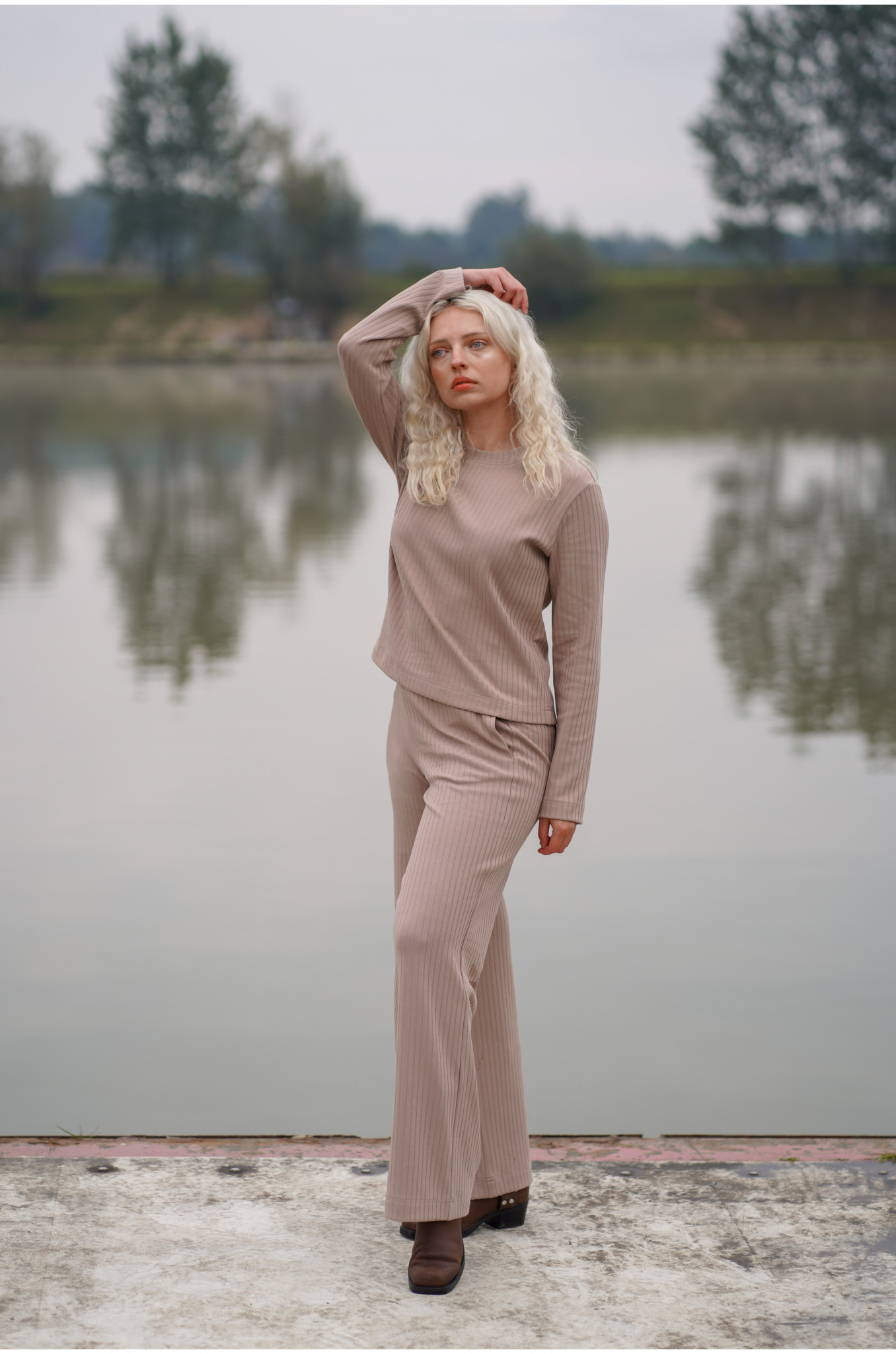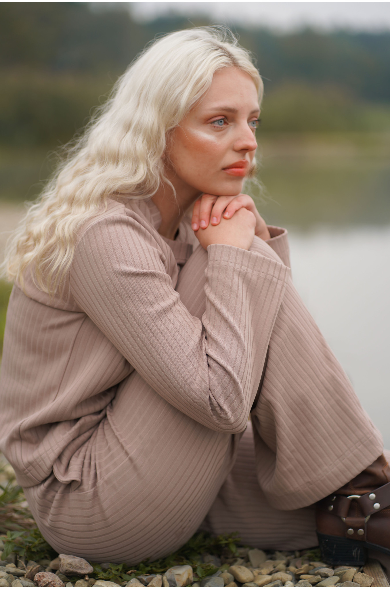 Ten longsleeve to ponadczasowy element garderoby, który łączy wygodę z elegancką prostotą. Uszyty z wysokiej jakości dzianiny o wyrazistym, grubym prążku, produkowanej w Polsce, zapewnia komfort noszenia i trwałość na lata.