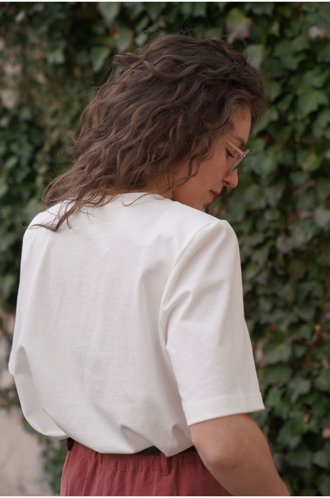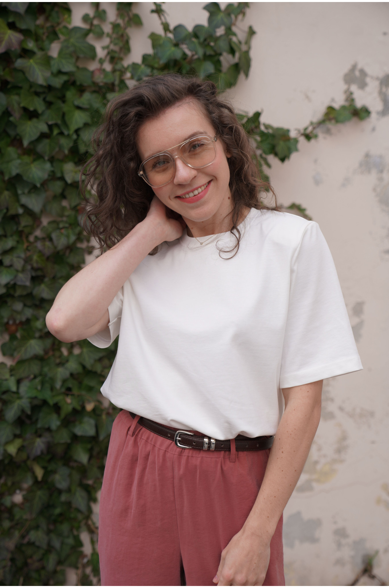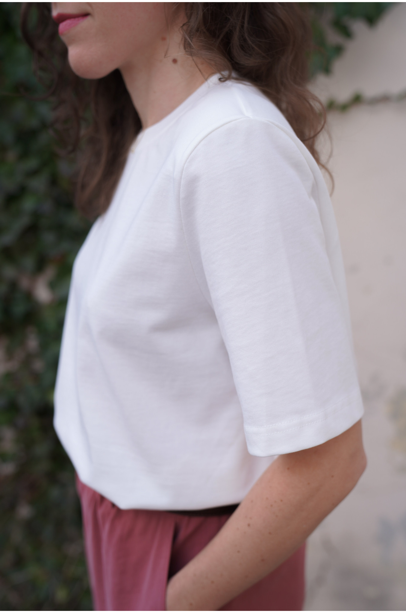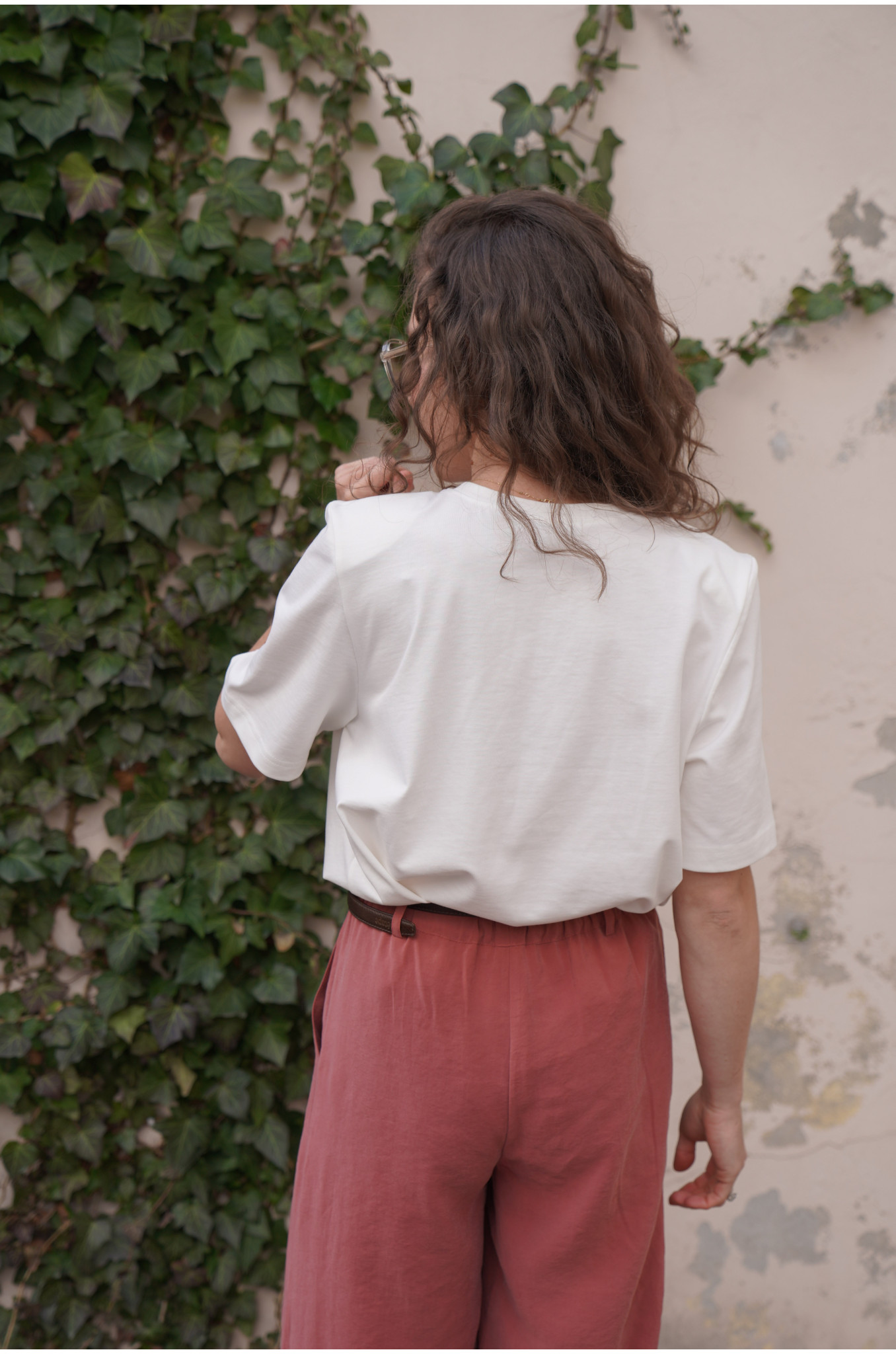 Nasz T-shirt Form o pudełkowym fasonie to nowoczesna baza do wielu stylizacji. Lekko dłuższe rękawki oraz delikatne poduszki na ramionach subtelnie podkreślają linię sylwetki i nadają całości modnego charakteru. Minimalistyczna forma sprawia, że t-shirt świetnie sprawdzi się zarówno w casualowych, jak i bardziej dopracowanych zestawach.
