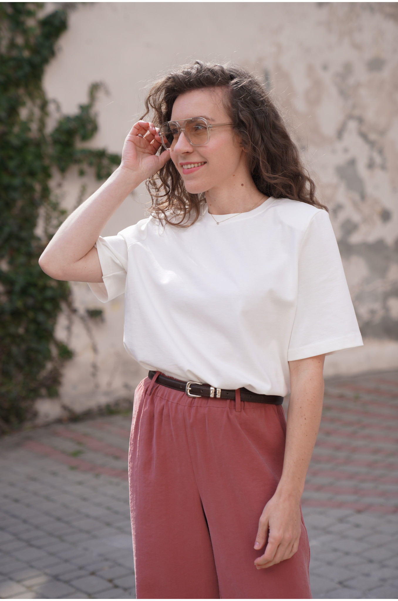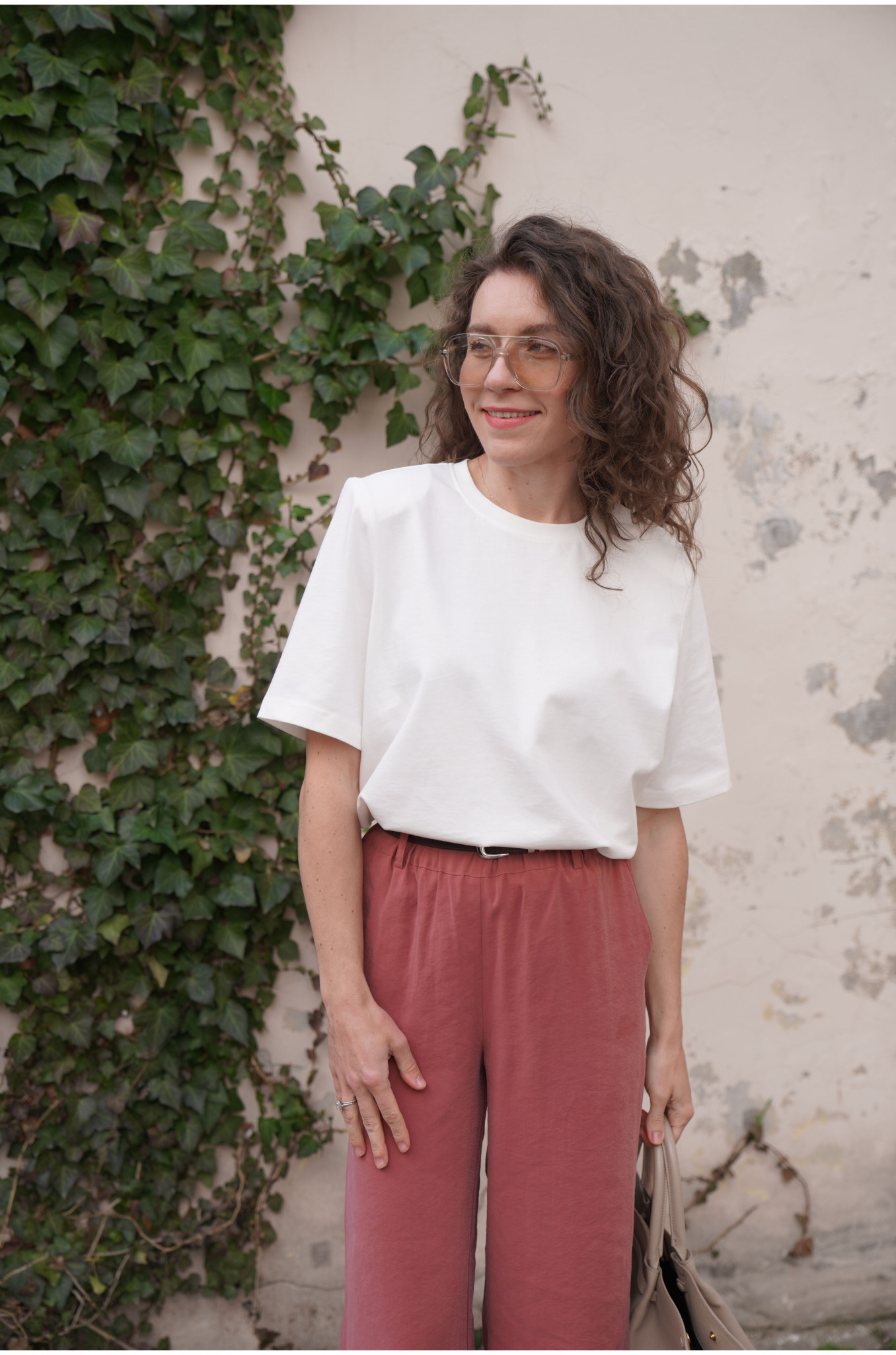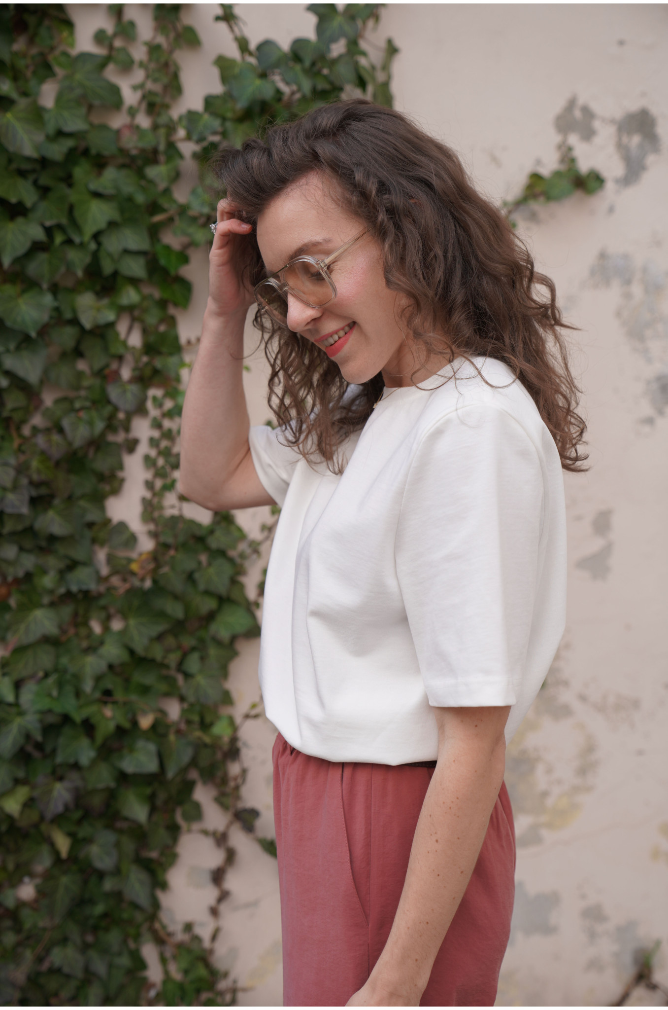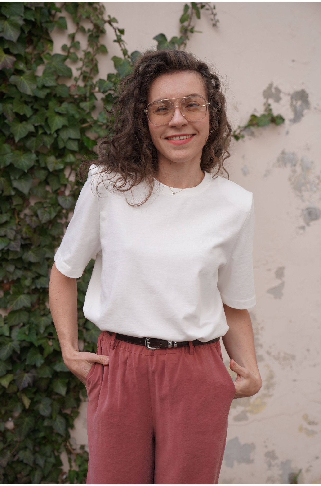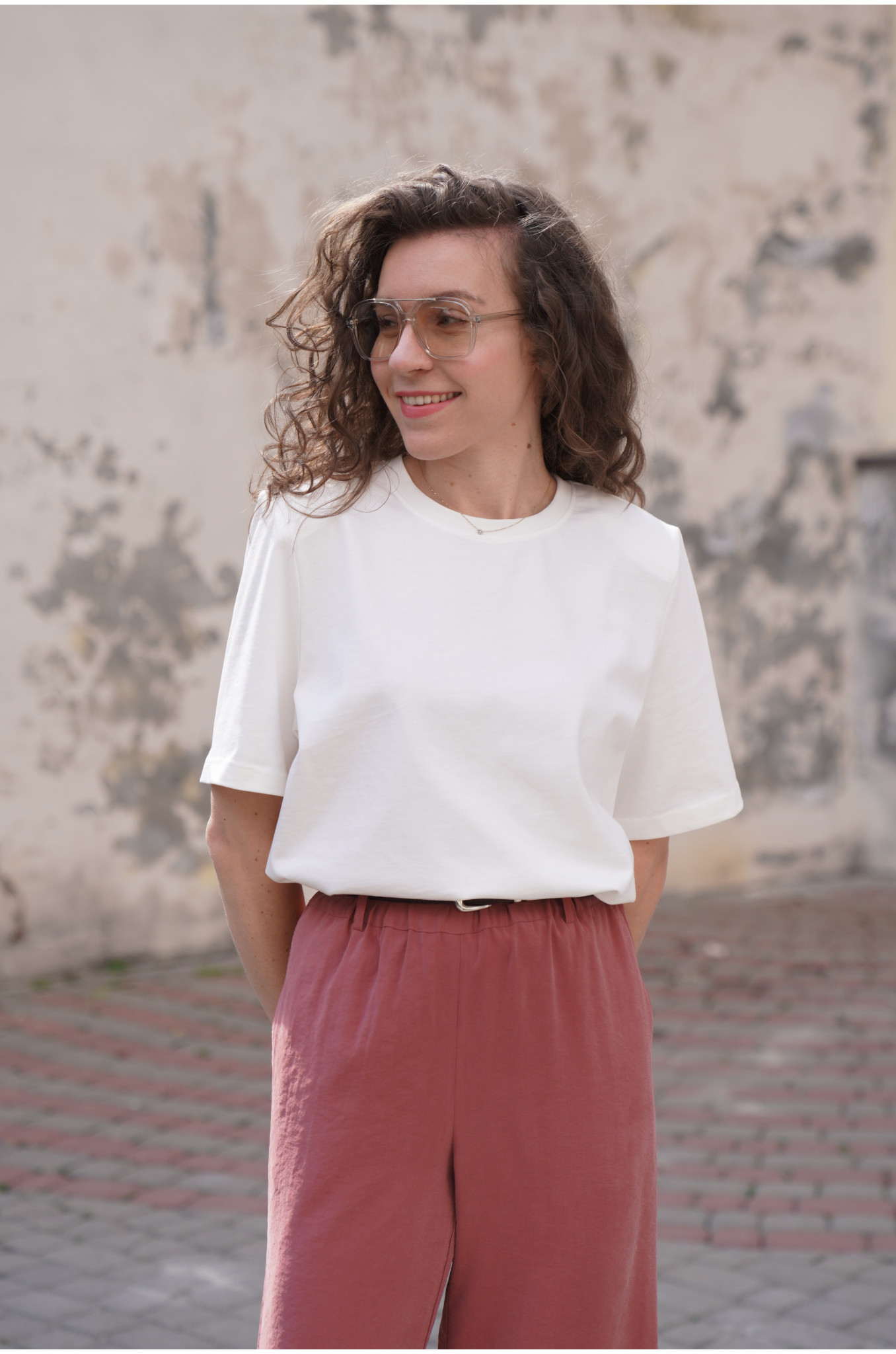 Nasz T-shirt Form o pudełkowym fasonie to nowoczesna baza do wielu stylizacji. Lekko dłuższe rękawki oraz delikatne poduszki na ramionach subtelnie podkreślają linię sylwetki i nadają całości modnego charakteru. Minimalistyczna forma sprawia, że t-shirt świetnie sprawdzi się zarówno w casualowych, jak i bardziej dopracowanych zestawach.